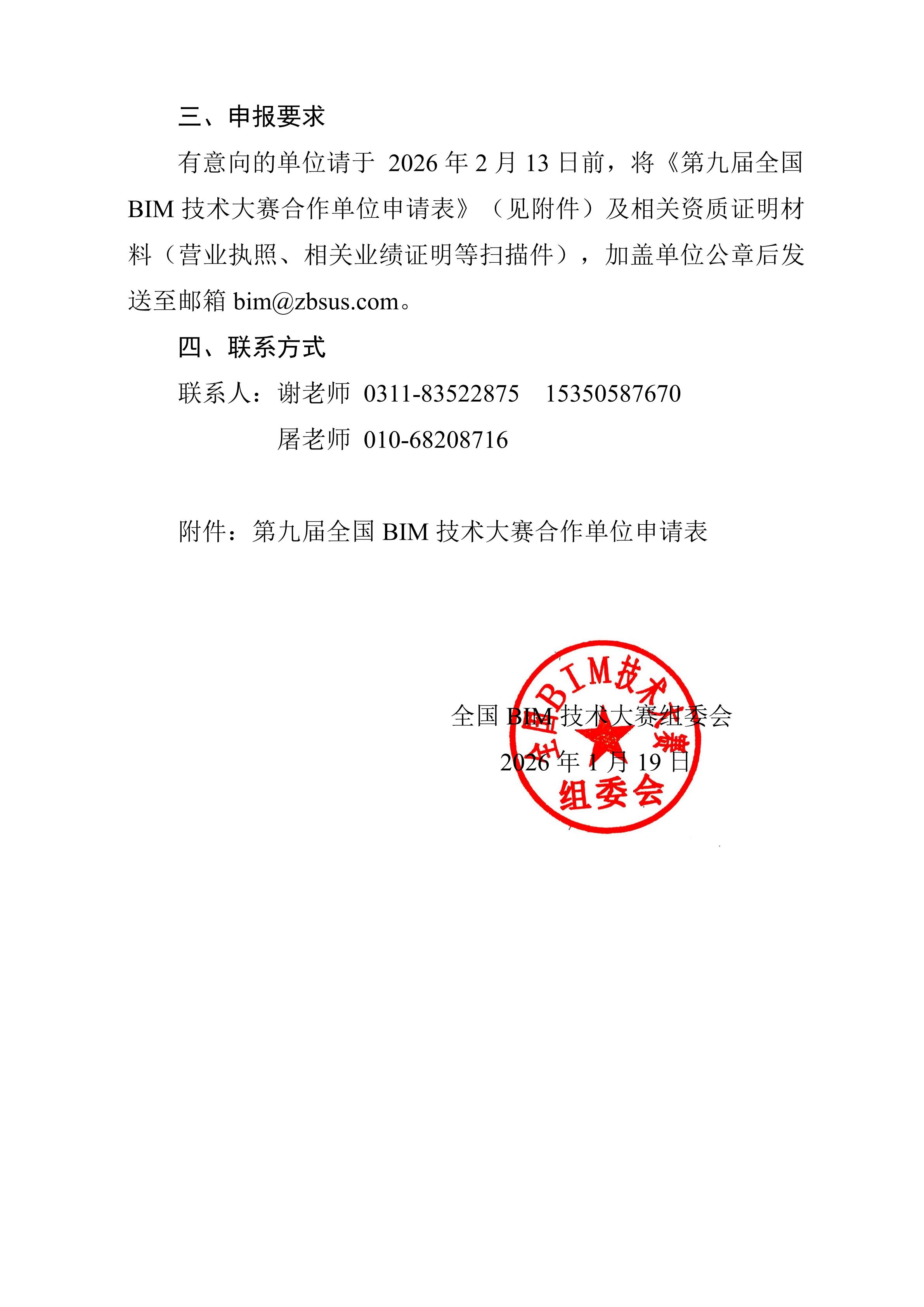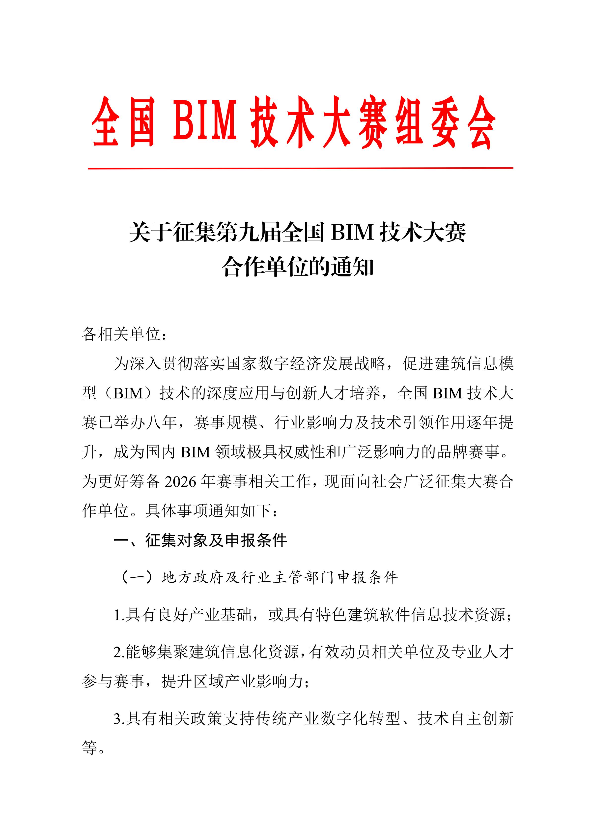 关于征集第九届全国BIM技术大赛合作单位的通知